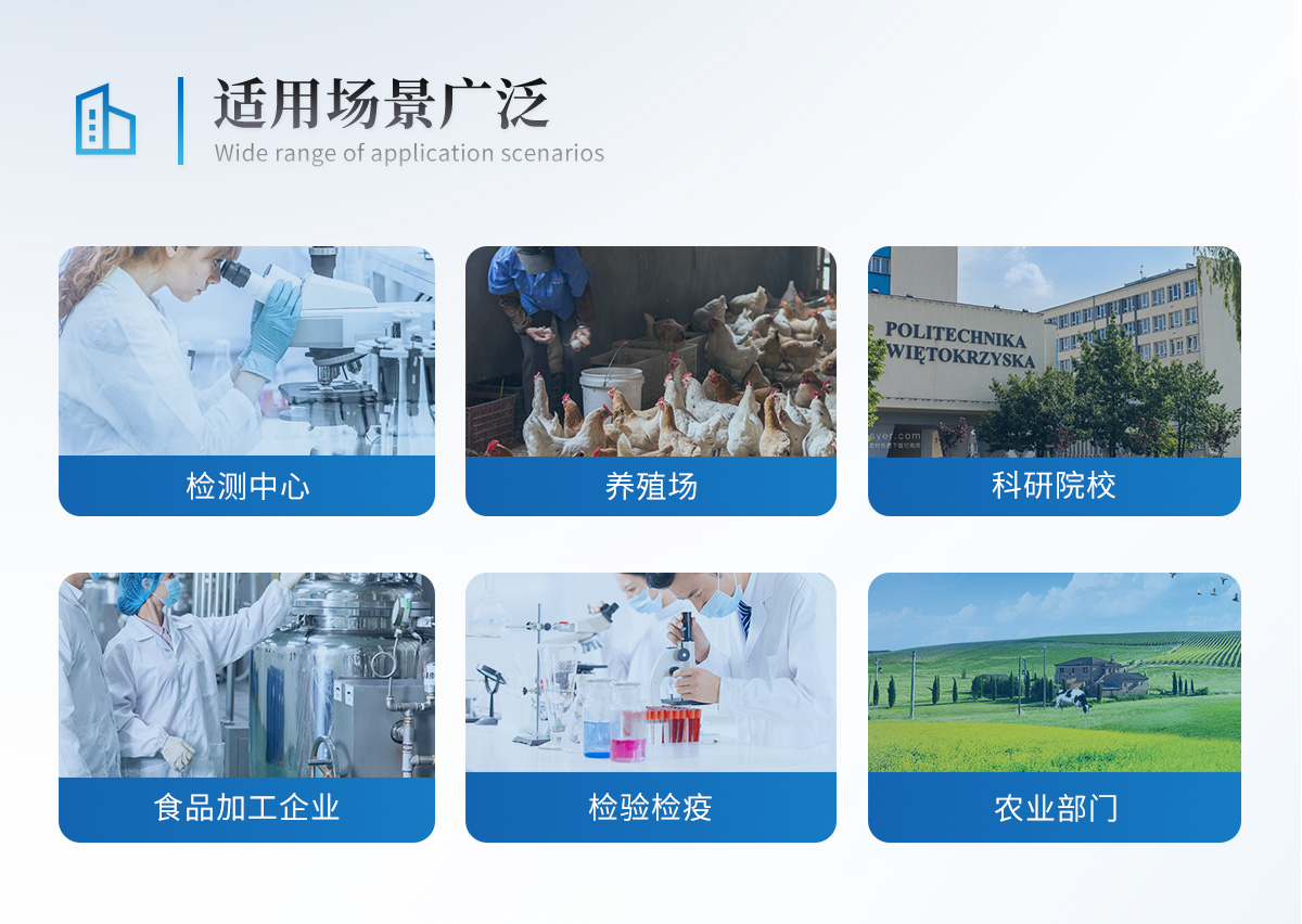 該瘦肉精檢測儀為集成化食品安全快速檢測分析設(shè)備,目前已于食藥監(jiān)局、衛(wèi)生部門、高教院校、科研院所、農(nóng)業(yè)部門、養(yǎng)殖場、屠宰場、食品肉產(chǎn)品深加工企業(yè)及檢驗檢疫部門等單位廣泛使用。